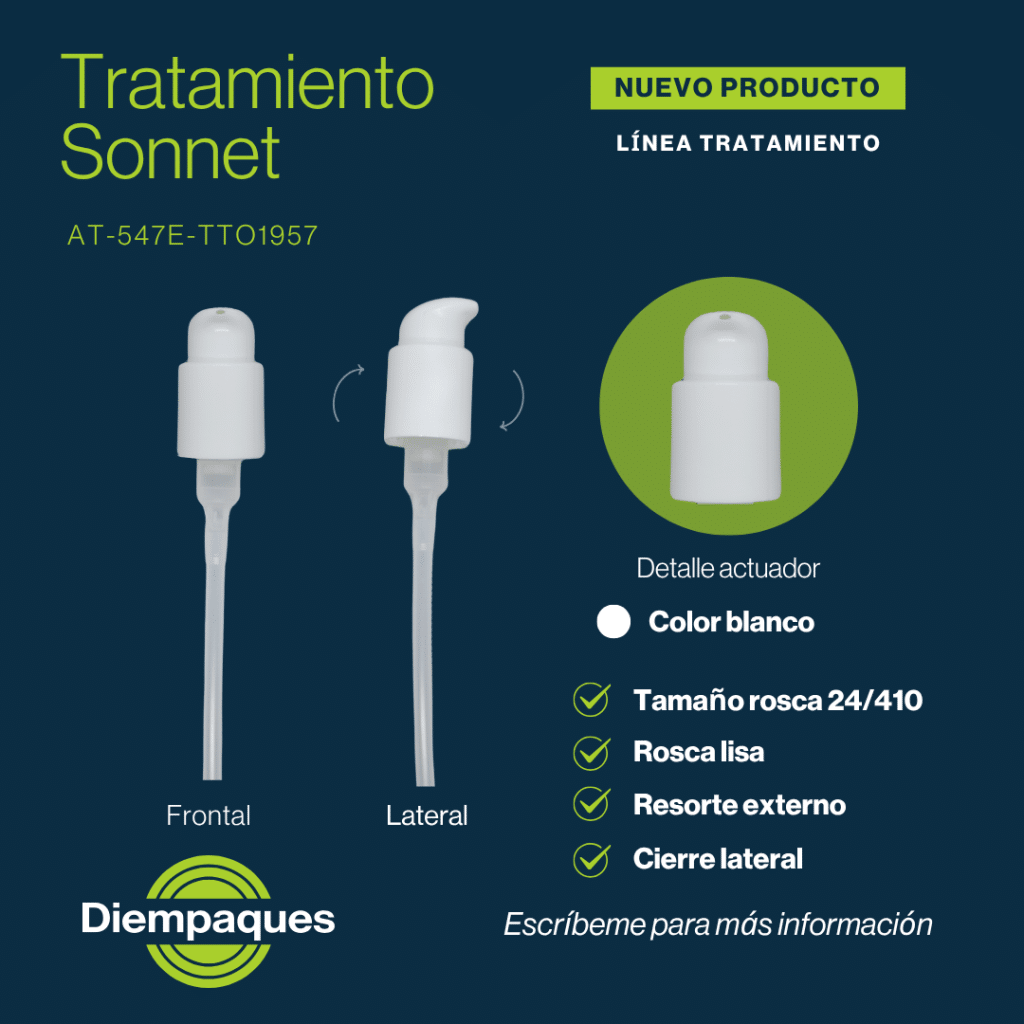 Este sistema de dosificación permite una aplicación precisa, ya sea en finas partículas, espuma. Es ideal para productos cosméticos, de cuidado personal y del hogar como sueros, cremas, geles, jabones, limpiadores faciales, aguas micelares y otras formulaciones.